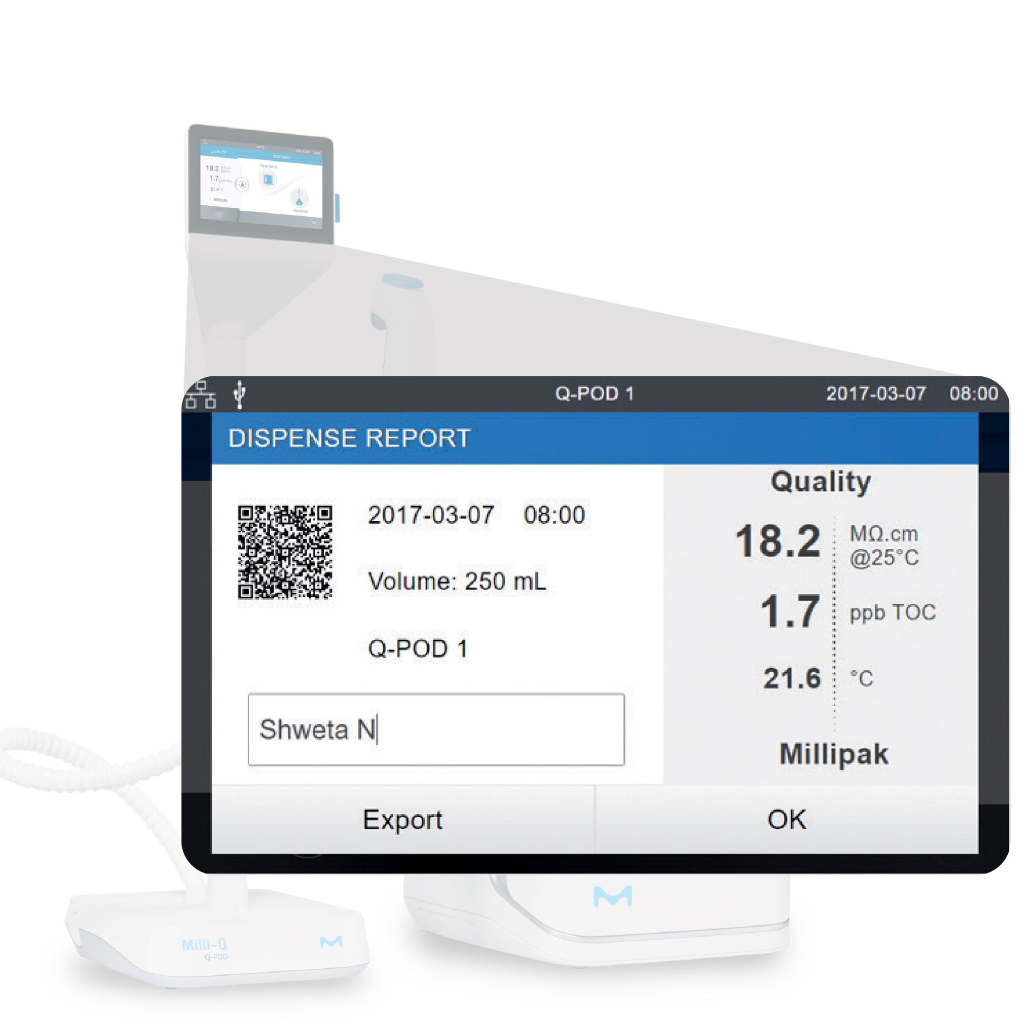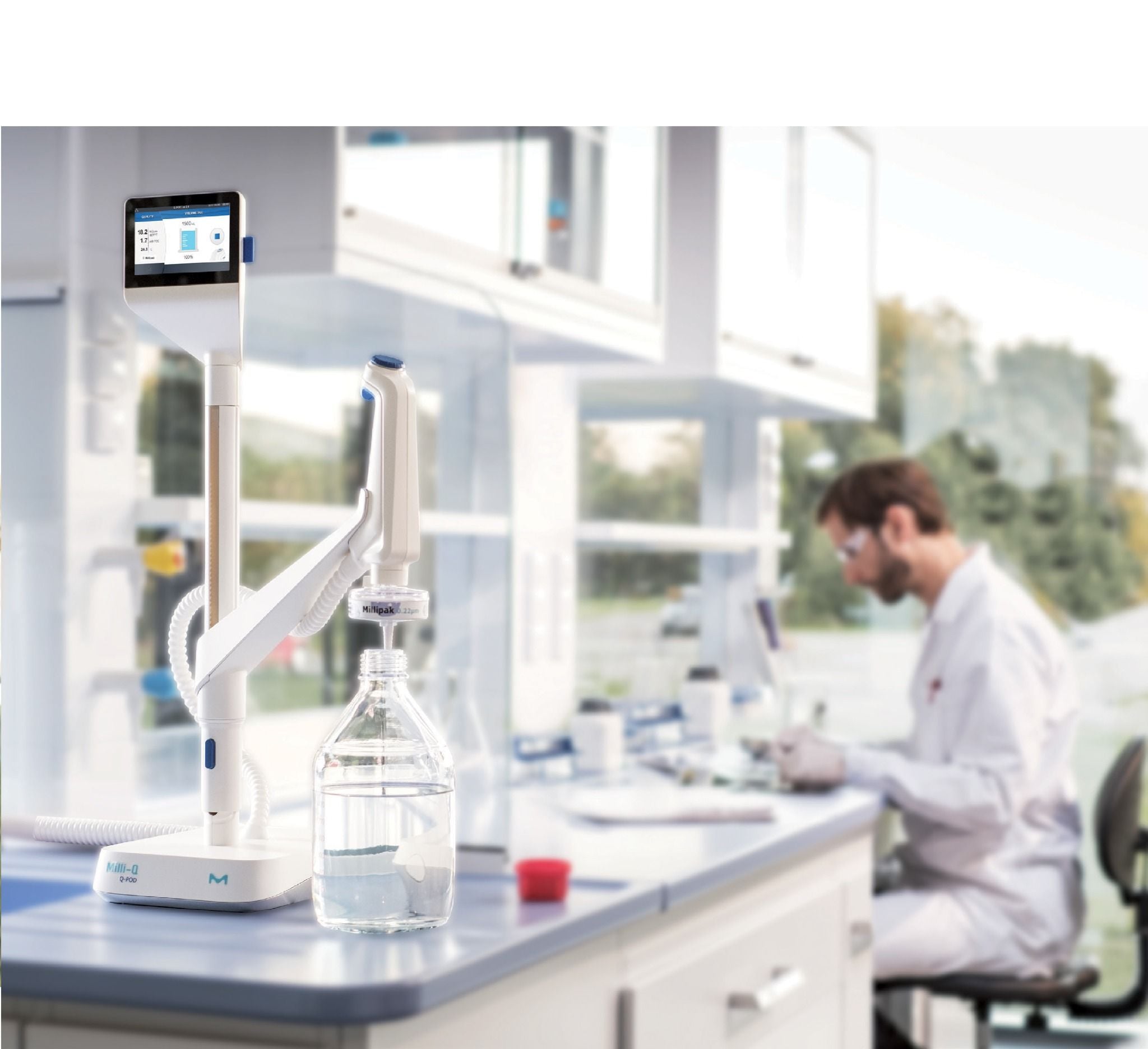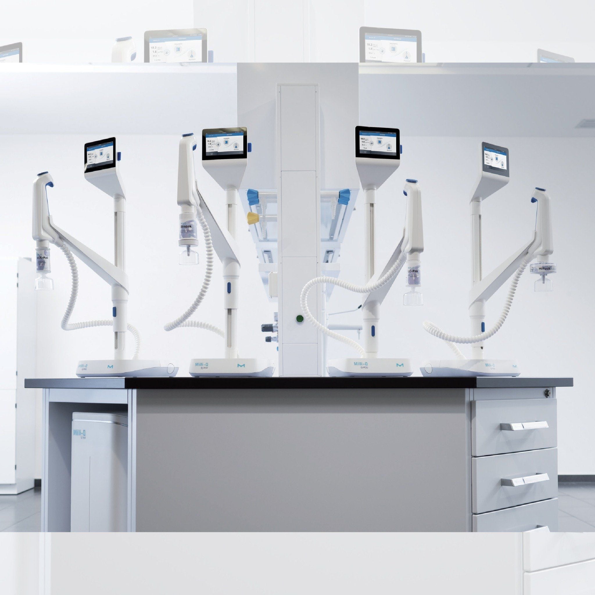 - Đầu cấp nước kéo dài cho nước siêu tinh khiết Q-POD với tinh năng cấp nước theo chế độ cài đặt thể tích chính xác từng giọt; tốc độ cấp tối đa tới 2L/phút, thao tác điều khiển thuận tiện bằng tay hoặc chân giúp việc tiếp cận, sử dụng nước tinh khiết ngay tại vị trí máy phân tích được thuận tiện hơn.